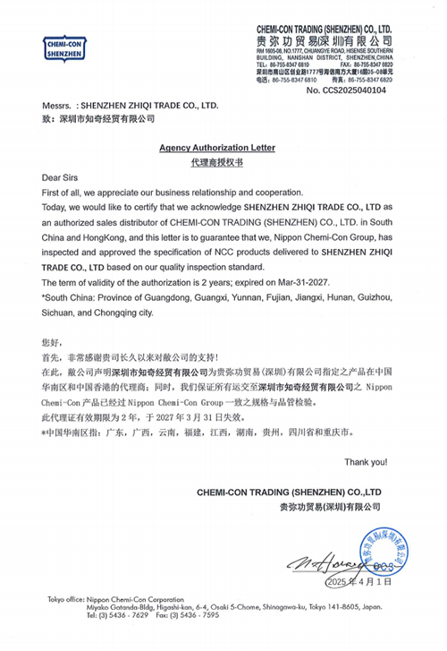 根據(jù)公開信息,國(guó)內(nèi)有幾家公司代理NCC(Nippon Chemi-con,日本貴彌功,俗稱“黑金剛”)電容 深圳市亞澤科技有限公...